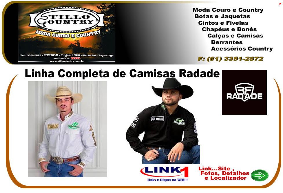 - Linha de Camisas Radade , Calças Jeans J. Lorran e Botas Forasteiro , Moda Country em Taguatinga / Brasília / DF