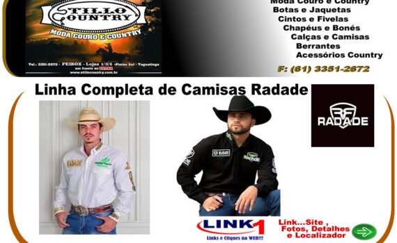 Na Stillo Country, Coleção Completa de Camisas Radade e Calças Jeans , Moda Country em Taguatinga / Brasília / DF Linha de Camisas Radade , Calças Jeans J. Lorran e Botas Forasteiro , Moda Country em Taguatinga / Brasília / DF Últimos Lançamentos de Chapéus Pralana e Camisas Radade , […]