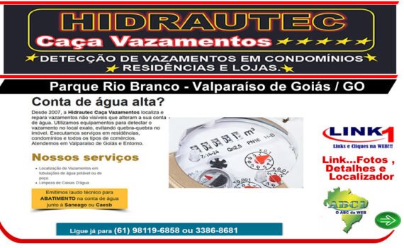 Hidrautec , Caça Vazamentos em Valparaíso de Goiás / GO e Entorno do DF Hidrautec , Emissão de Laudo Técnico para desconto na conta Saneago em Valparaíso de Goiás / GO Hidrautec , localiza vazamentos de água e emite Laudo Técnico da Saneago em Novo Gama / GO Caça Vazamentos […]